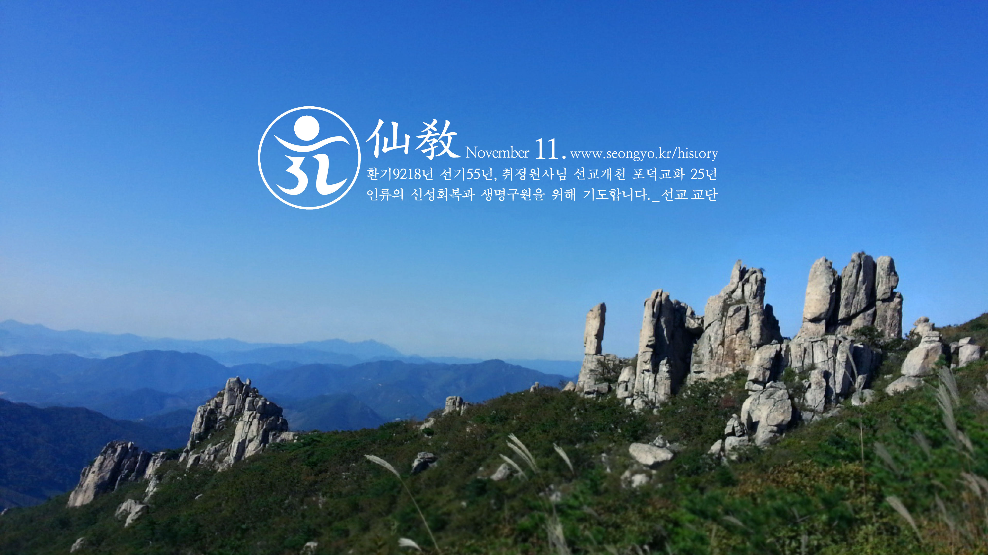 올해로 환기9218년 선기55년 선교개천34년 선교창교31년(창교30주년) 선교교단창설25년을 맞은 선교(仙敎)는 교조 취정원사(聚正元師)께서 설립한 선교환인집부회(仙敎桓因慹父會)를 모태로 하는 일교일종(一敎一宗) 민족종교 종단입니다.