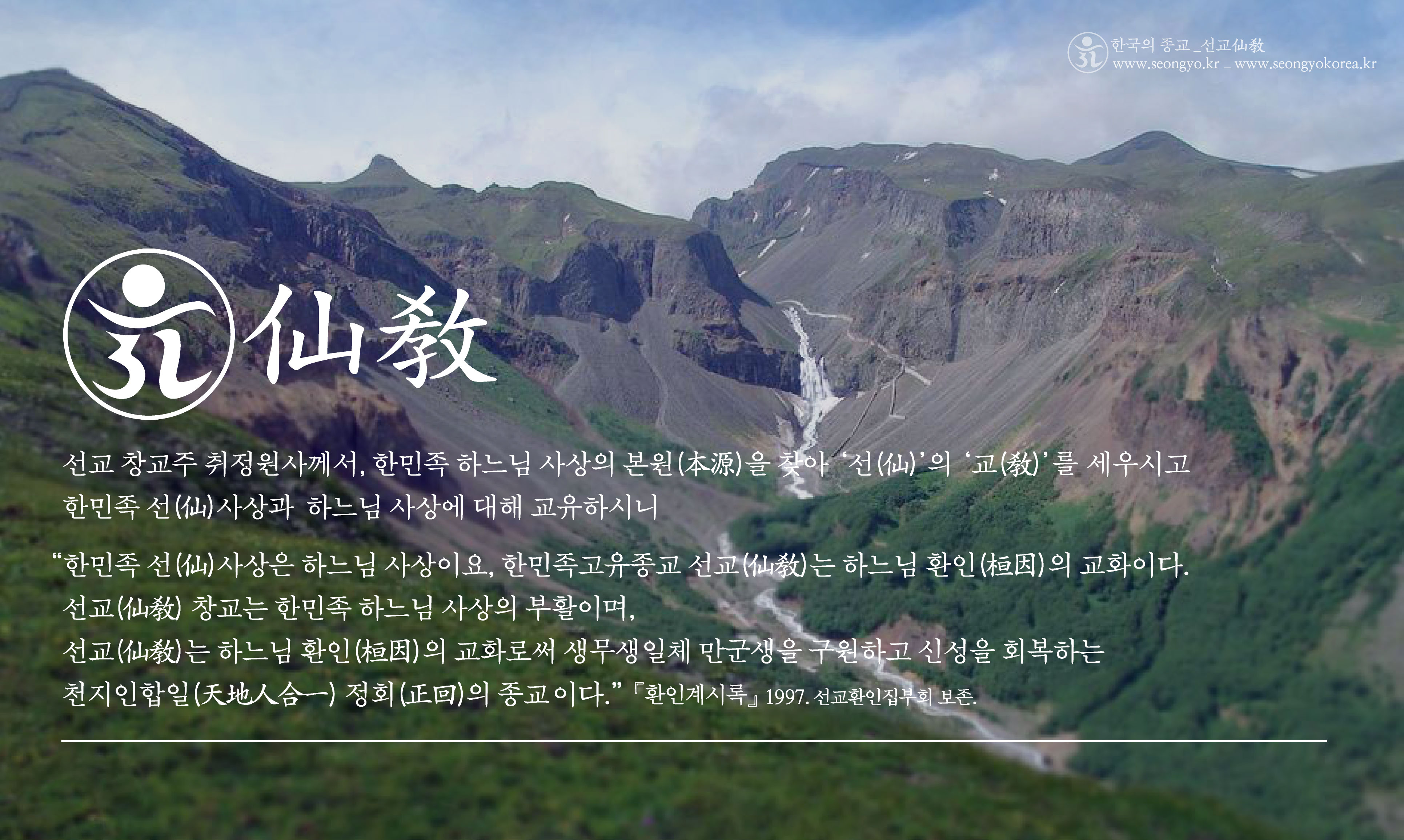 한민족고유종교 선교(仙敎)는 하느님 환인(桓因)의 교화이다.”