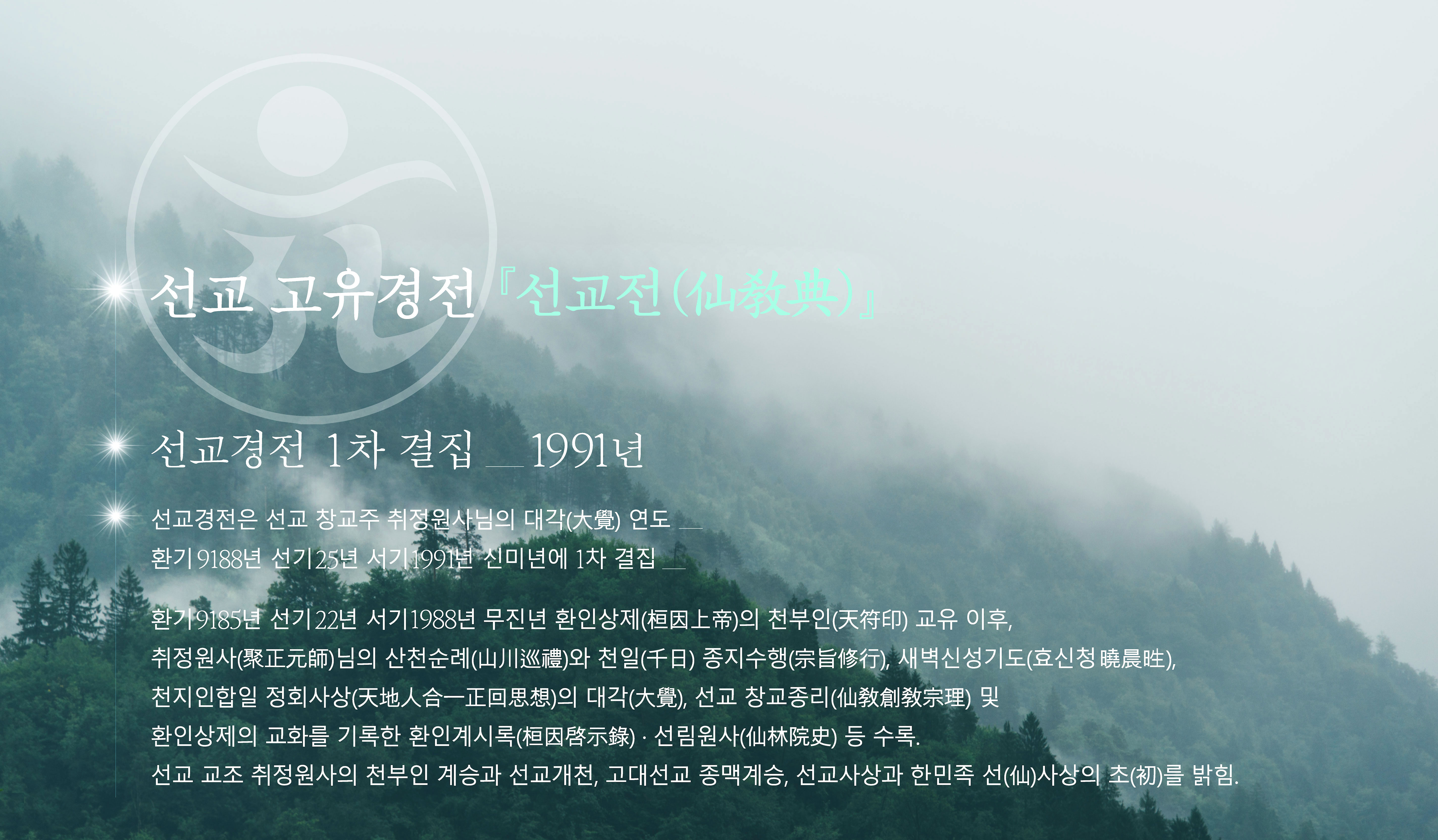 1. “선교 창교”는 선교(仙敎) 교단을 창설하신 취정원사님의 고유한 업적입니다.
