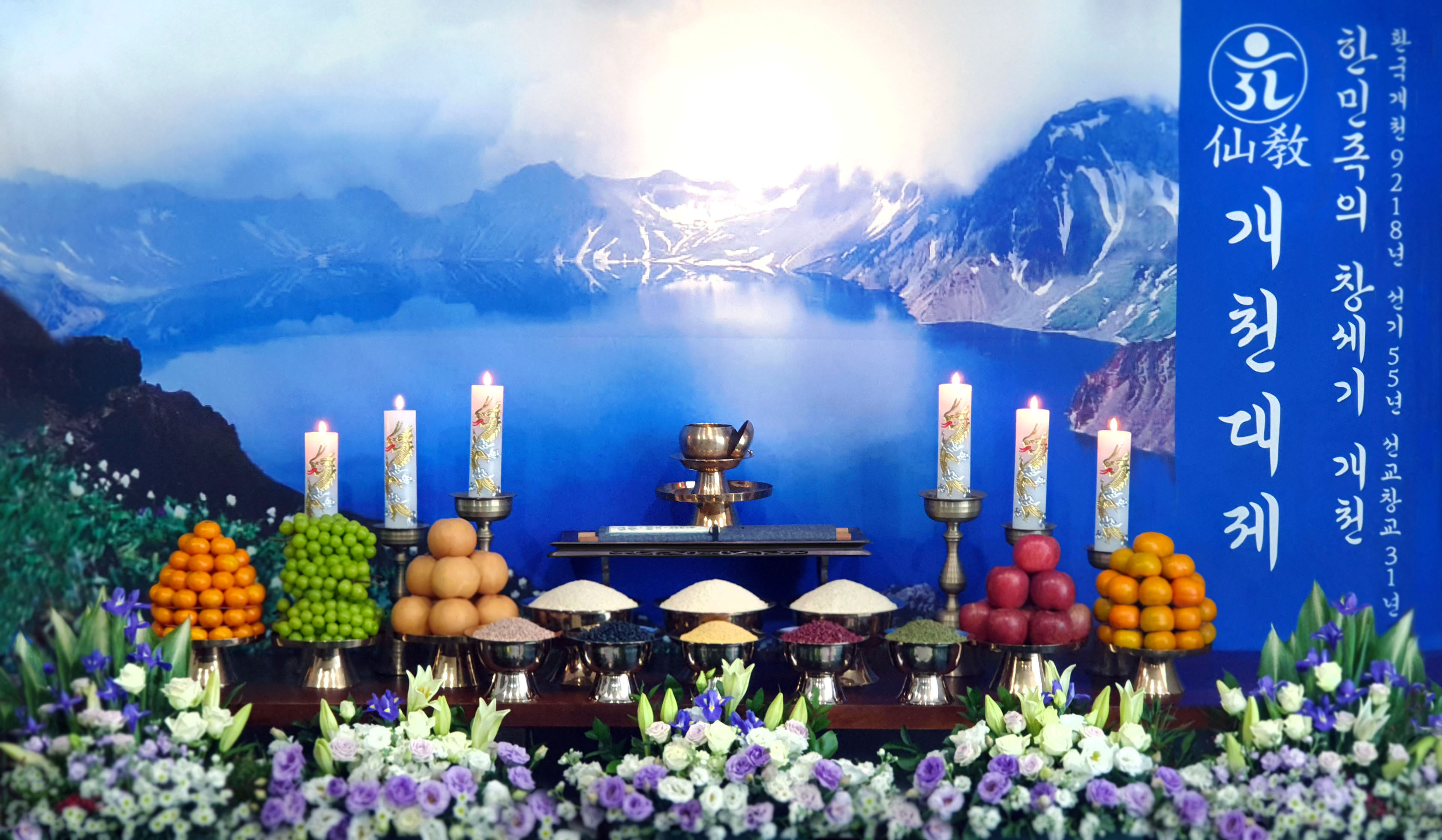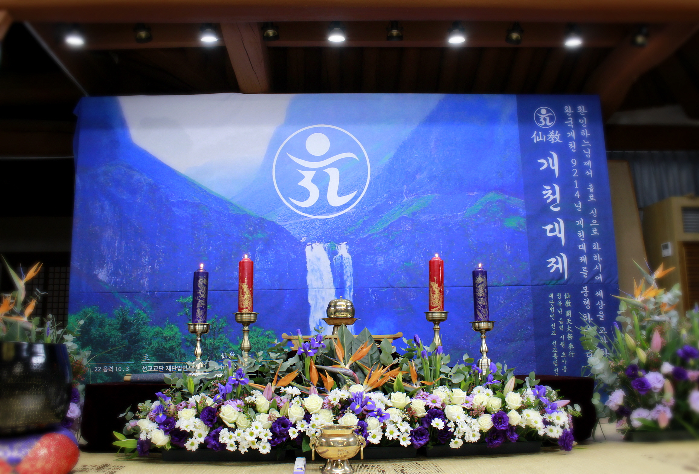 한국의 고유한 민족종교 선교(仙敎)는, 선교 창시자 박광의(朴光義) 취정원사(聚正元師)님의 [개천교유(開天敎諭)] 말씀에 따라, 선교 교단의 시초인 선교환인집부회(仙敎桓因慹父會) 제천의례(祭天儀禮)로 매년 시월 상달 초사흘(음력 10월 3일) 취정원사께서 집전하시는 음력 개천절 개천대제(開天大祭)를 봉행해왔습니다.