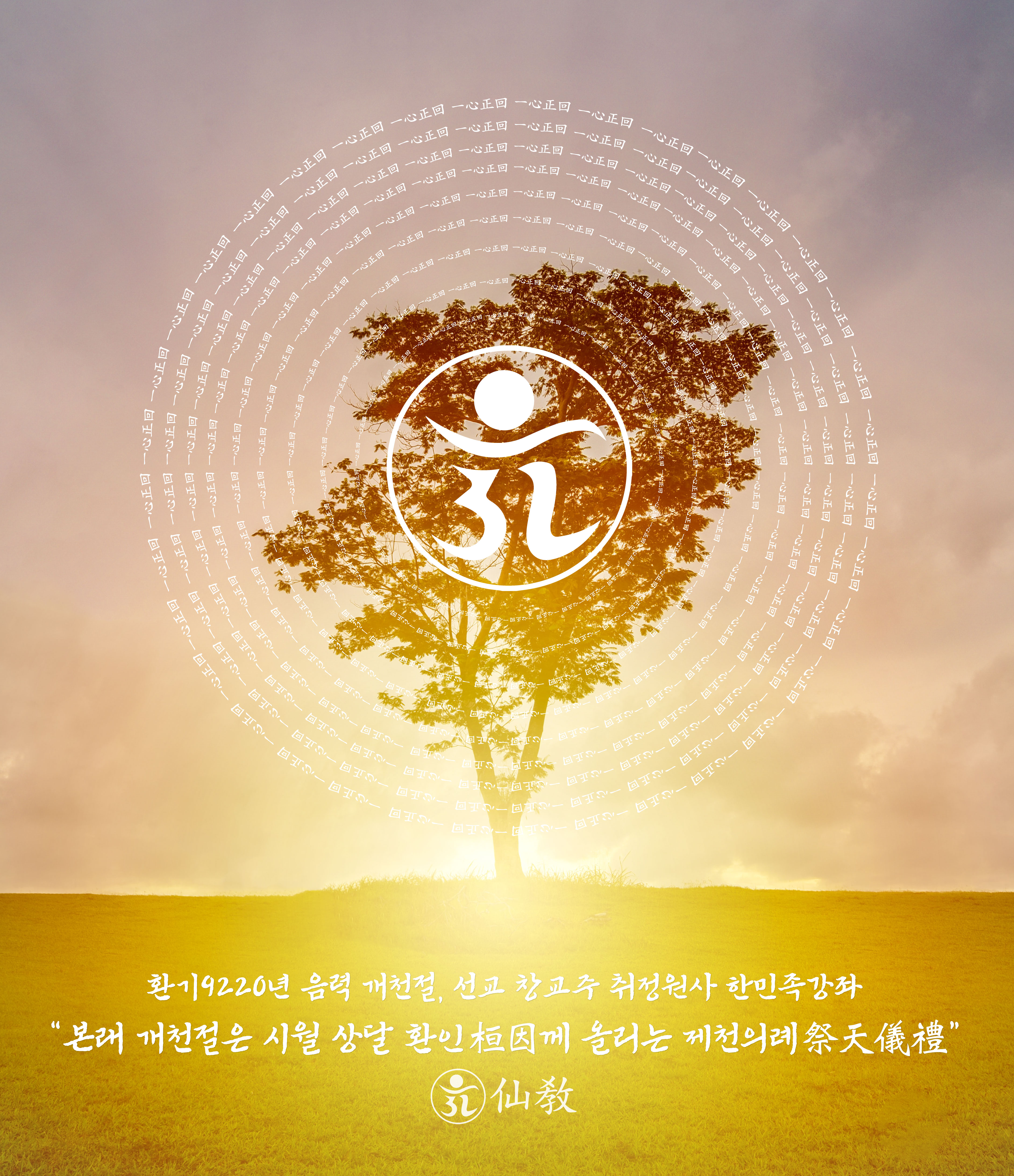 “개천(開天)은 한민족(韓民族)의 창세기이며, 환인(桓因)은 한민족의 시조이시며 온 세상의 하느님 유일신 하나님이시다. 한민족은 시월(十月) 상달(上月) 즉 음력 10월을 신성하게 여기며 하늘에 제사하는 제천의례를 올렸으니, 고구려의 동맹(東盟), 예의 무천(舞天), 삼한의 소도(蘇塗), 시월제(十月祭), 계음(禊飮)을 비롯하여, 부여의 영고(迎鼓), 고려시대 팔관회(八關會), 원구단(圜丘壇), 환구단(圜丘壇 ), 천제단(天祭壇), 제천단(祭天壇) 등 모두 한민족 고대로부터의 제천의식(祭天儀式)을 계승한 한민족 고유의 하느님신앙 하늘문명의 단초이다.”