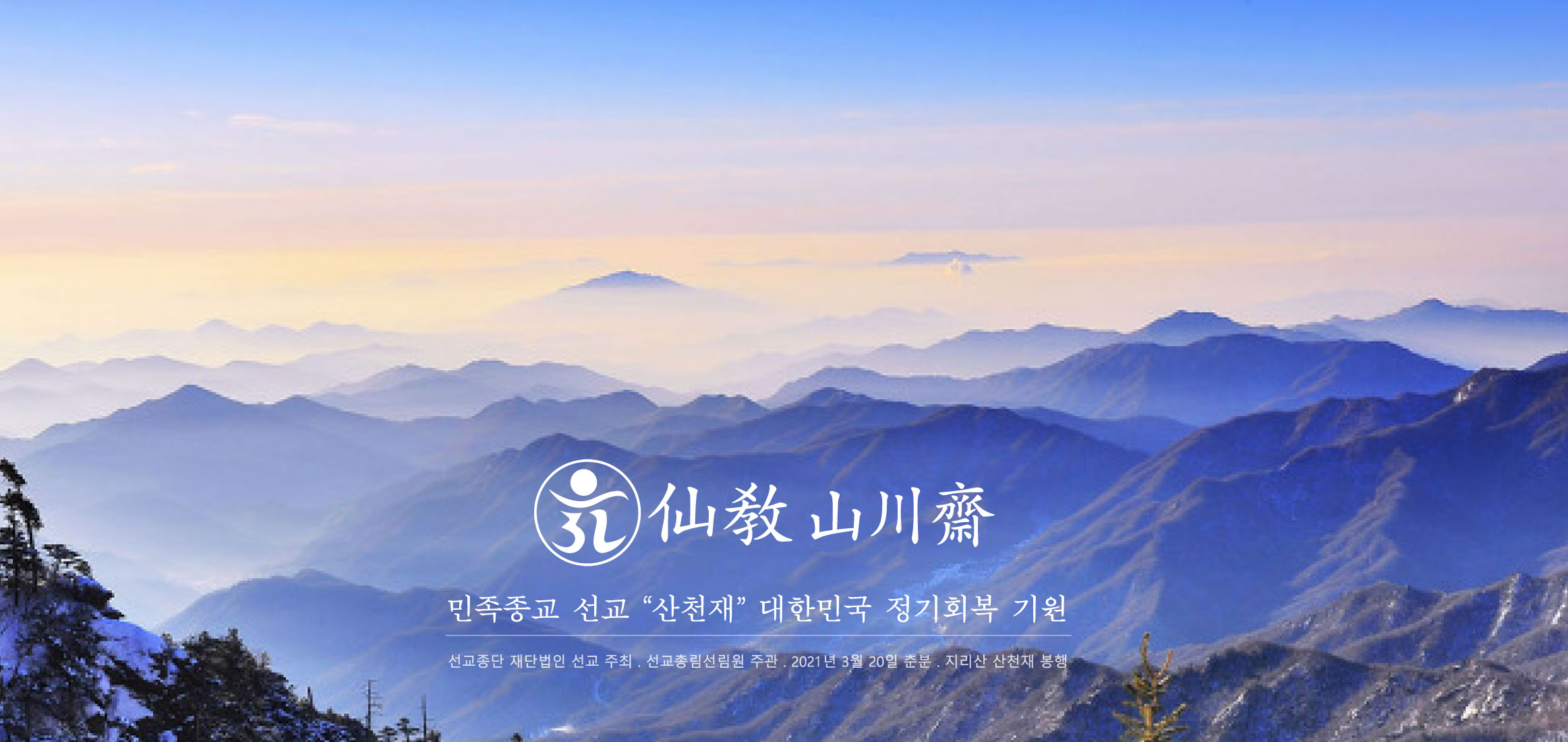 선교 교단 재단법인 선교(仙敎)와 선교 총본산 선교총림(仙敎叢林) 선림원(仙林院)은 환기 9221년 갑진년(甲辰年) 춘분(春分) 절기 산천재(山川齋)를 통하여 대한민국 산천의 정기회복와 인류의 신성회복을 기원합니다.