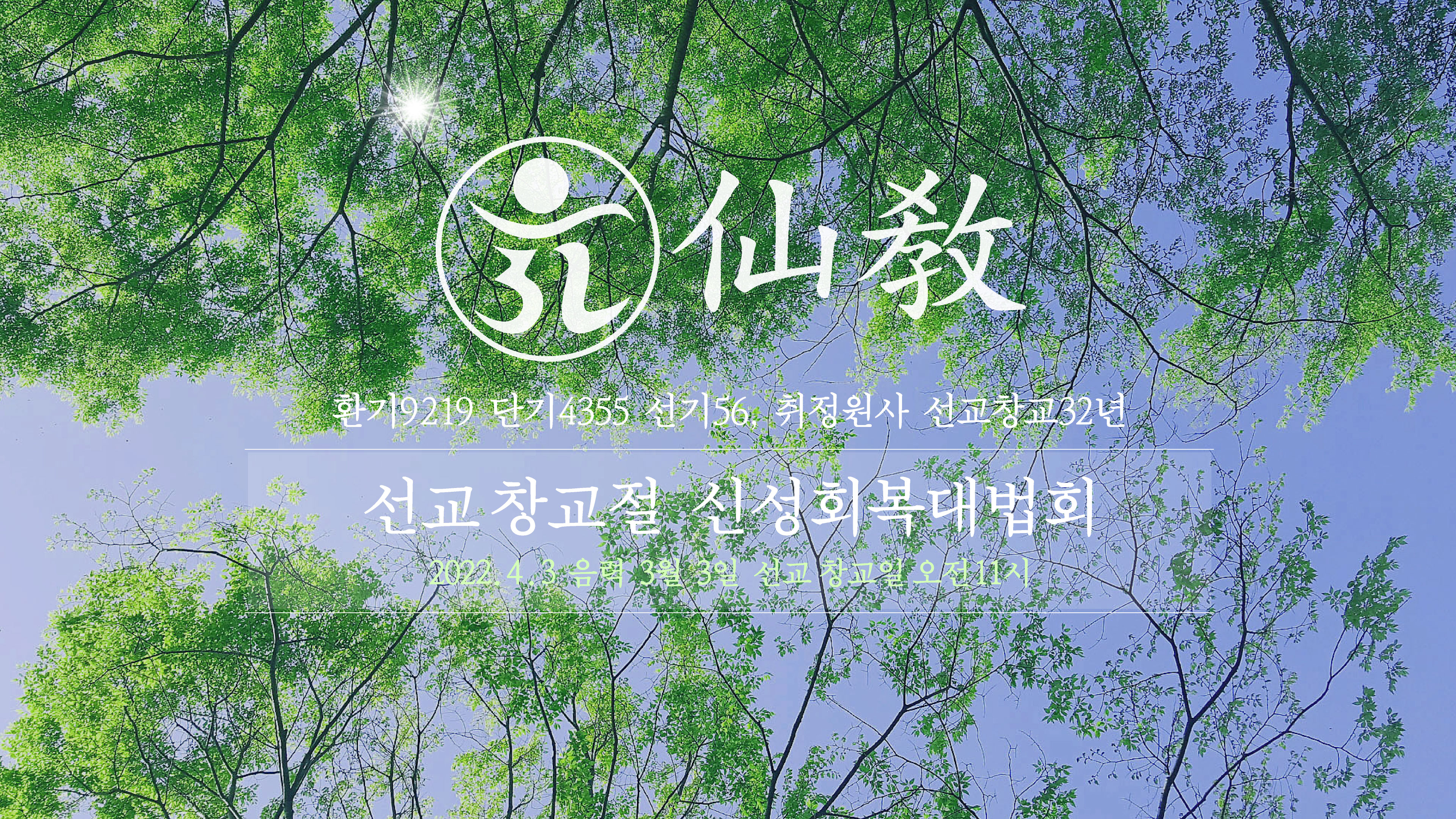 ※ 선기 58년 선교창교 33주년, 한민족고유문화진흥원 "신단수 선맥과 한민족 고유의 선도사상" 공개강연 / 4.21