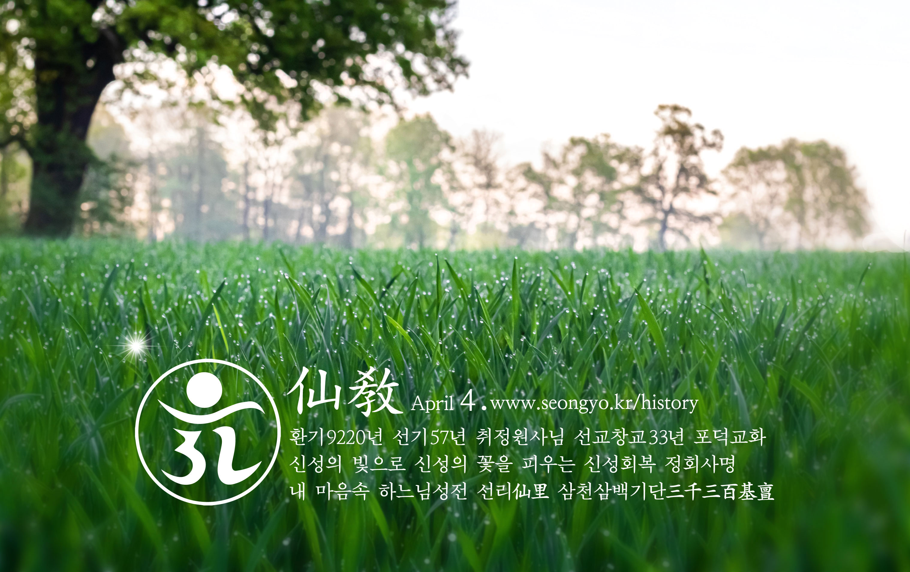 환인(桓因) 하느님의 향훈과 선교 교조 취정원사(聚正元師)님의 교화 아래,