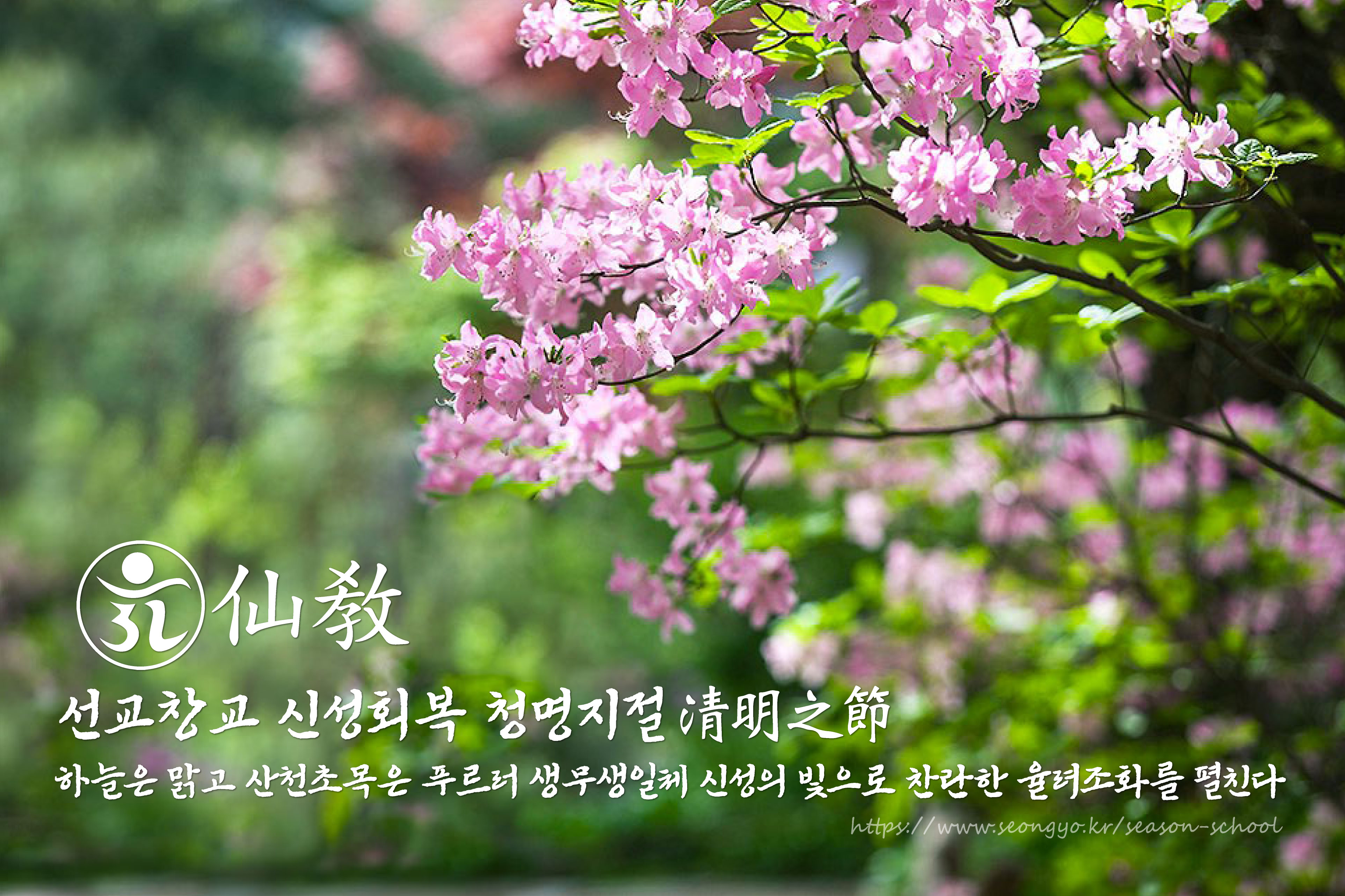 一. 「무등(無等)의 영점(零點)을 지나 하늘의 빛으로 만물이 소생(蘇生)하는 소선(蘇宣)의 절기 ‘청명(淸明)은 선교개천(仙敎開天)의 절기’이니라.」 _ 선교 경전 『선교전(仙敎典)』 선교창교(仙敎創敎) 篇.