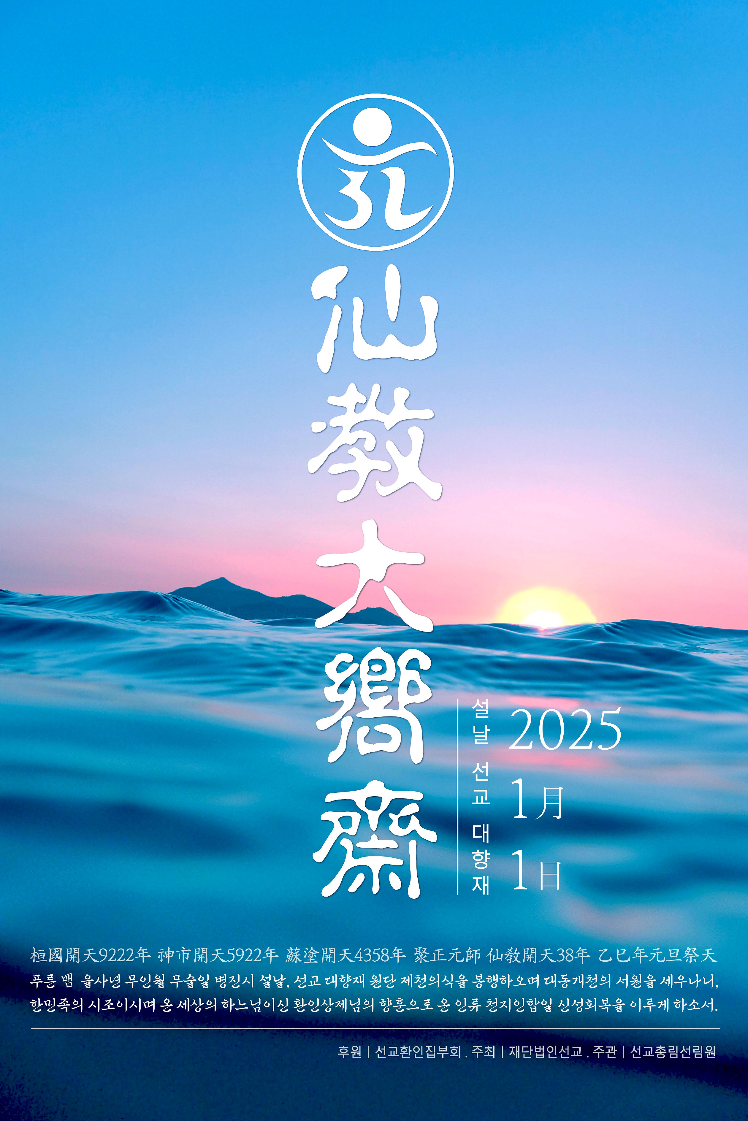 한국의 민족종교 종단 “재단법인 선교(仙敎)”와 선교총본산 “선교총림 선림원(仙林院)”은 환기9222년 단기4358년 선기59년 서기2025년 을사년(乙巳年) 구정 설날을 맞아, 한민족 하느님 환인(桓因上帝)의 사백력(斯白力) 광명개천(光明開天)을 기리는 정월 초하루 제천의식 대향재(大嚮齋)를 봉행했습니다.