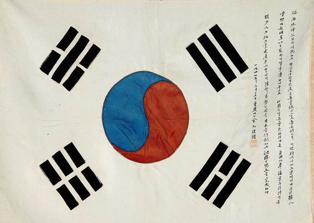 김구 서명문 태극기(金九 書名文 太極旗)는 대한민국 임시 정부 주석 김구[1876~1949]의 서명문이 있는 태극기로 1941년 중국에서 선교 활동을 하던 벨기에 출신의 신부 매우사(梅雨絲)[미우스 오그]가 미국으로 건너갈 때 김구 주석에게서 받은 것으로 전해지고 있다. 매우사는 미국 뉴욕에서 약 1년 동안 선교 활동을 하다가 중국으로 돌아갈 때 안창호의 부인 이혜련에게 김구 서명문 태극기를 맡겼고, 1985년 그 유족이 독립 기념관에 기증하여 현재까지 전해지고 있다. 김구 서명문 태극기는 높이 44.3㎝, 너비 62㎝로 흰색 바탕에 색깔 있는 천을 잘라 태극 문양과 4괘를 박음질하였다. 태극 문양은 파란색과 붉은색이 좌우 방향으로 맞물려 있고 4괘는 검은색이다. 태극기 바탕 오른쪽에는 광복군에 대한 우리 동포들의 지원을 당부한 김구의 친필 묵서가 세로로 쓰여 있다. “망국의 설움을 면하려거든, 자유와 행복을 누리려거든, 정력과 인력과 물력을 광복군에게 바쳐 강노말세(强弩末勢)인 원수 일본을 타도하고 조국의 광복을 완성하자.”라는 내용을 적고 서명하였다. 김구 서명문 태극기는 조국의 독립을 위해 앞장선 김구의 광복 의지가 담겨 있으며, 2021년 10월 25일 보물 제2141호로 지정되었고, 2021년 11월 19일 문화재청 고시에 의해 문화재 지정번호가 폐지되어 보물로 재지정되었다.