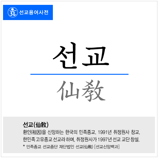 ※ 선교경전 [仙敎典]에 출처한선교용어는 재단법인 선교 저작권과 관련합니다. 타종교의 무단전재, 도용 표절 시, 민형사상의 법적책임을 지게됩니다.