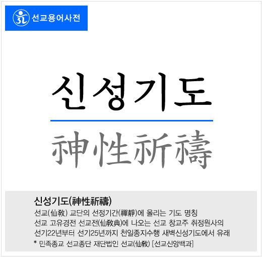 ※ 아래 선교 고유용어는 재단법인 선교 저작권과 관련합니다. 타종교 및 일반의 무단전재, 도용을 금합니다.