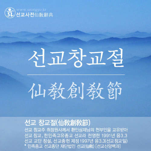 ※ 선교경전 [仙敎典]에 출처한선교용어는 재단법인 선교 저작권과 관련합니다. 타종교의 무단전재, 도용 표절 시, 민형사상의 법적책임을 지게됩니다.