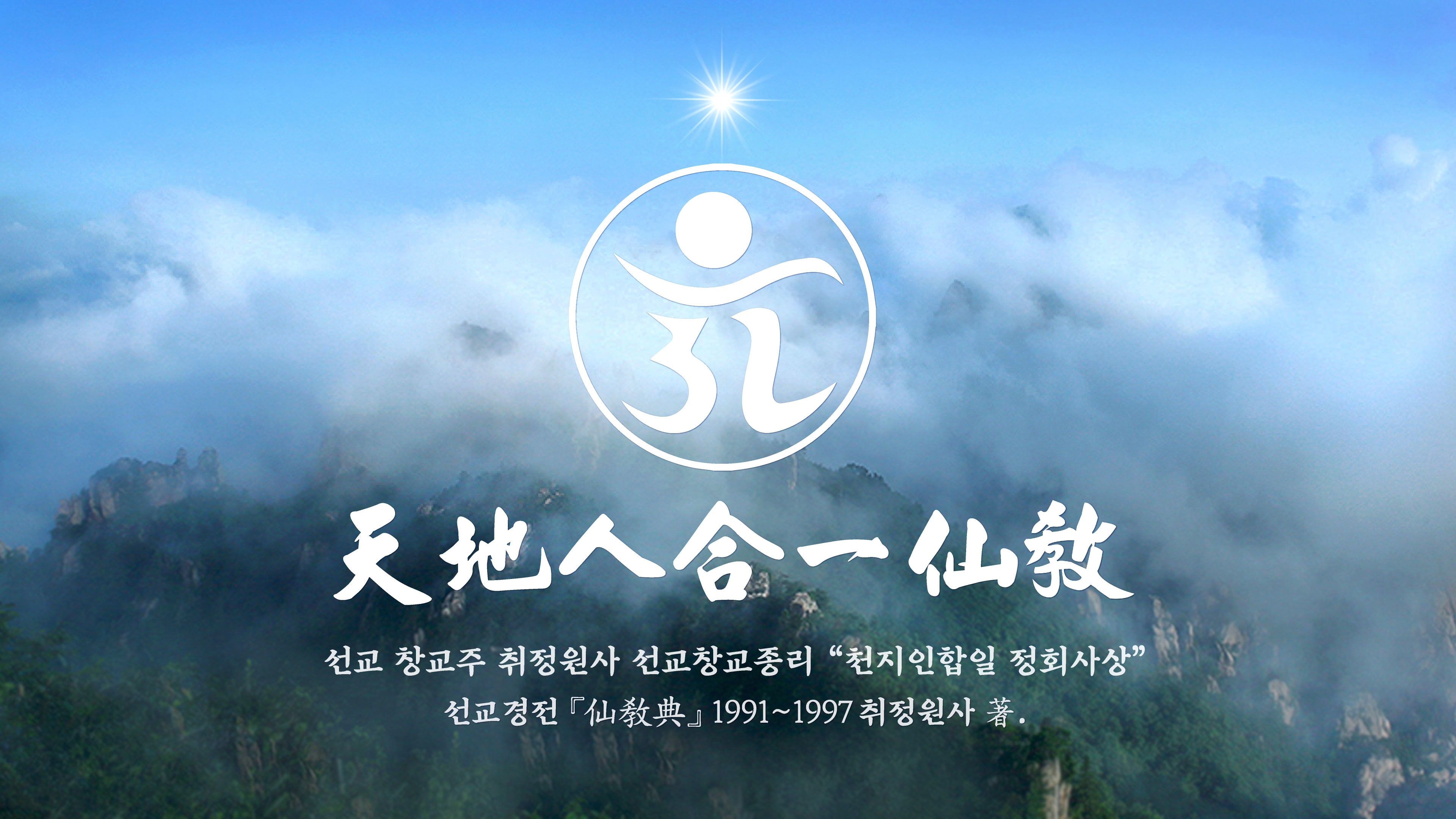 천지인합일(天地人合一)의 종교 선교(仙敎) · 선교수행 선도(仙道) · 선교철학 선학(仙學)으로 대표되는 선(仙)문화의 중흥시대는 우주천지만물과 모든 교도리학(敎道理學)이 선교삼정으로 회귀하여, 선(仙)의 본원이며 진리(眞理)의 근원이신 하느님 환인(桓因)께 귀의(歸依)하여 일심정회(一心正回)하게 되는 천도순리(天道順理)가 이 땅에 펼쳐지는 재세이화 한울세상 실현의 교두보가 될 것이다. 선교(仙敎)를 신앙하고, 선도(仙道)를 닦으며, 선학(仙學)을 배우고 익히는 선교삼정(仙敎三鼎)의 실천에 정진하라 선제들이여! 」