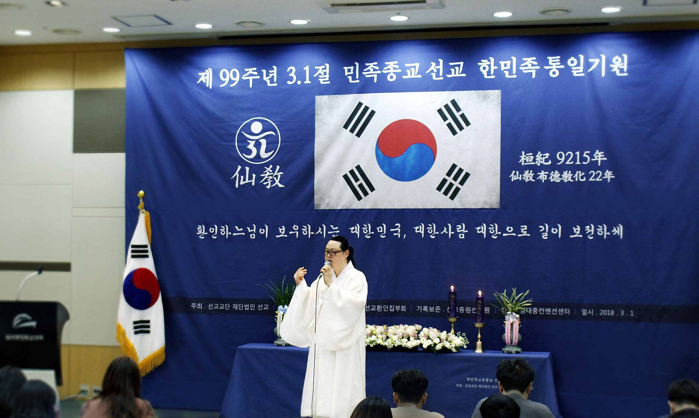 [선교중앙종무원] 한국의 민족종교 선교종단 재단법인 선교(仙敎)와 선교총림 선림원(仙林院)은, 80주년 8.15 광복절을 맞아 교화천제(敎化天祭)와 함께 선교 창교주 취정원사님의 민족강좌를 개최하였습니다. 선교(仙敎)는 1991년 창교 이래 매년 광복절에 한민족 고유종교 선교에 대한 올바른 이해와 자주적 역사관을 심어주고자, 교화천제(敎化天祭)와 ‘진정한 광복(光復)과 완전한 독립(獨立)’을 주제로 선교(仙敎) 창교주 박광의(朴光義) 취정원사(聚正元師)님의 선교학당(仙敎學堂) 민족강좌(民族講座)를 진행하고, 평화통일과 자주국방 그리고 민족정신의 독립과 종교적 독립을 통한 민족중흥의 사명을 일깨워 왔습니다. 선교(仙敎)의 80주년 광복절 기념 교화천제(敎化天祭)는, 한민족(韓民族)의 시조(始祖)이신 환인천제(桓因天帝)를 경배하는 33천(三十三天) 공천배례로 시작하여, 선교 창교주 박광의(朴光義) 취정원사(聚正元師)님의 광복절 기념사 “대한의 광복에서 인류구원의 신성회복으로” 법문과 독립투사와 순국선열의 숭고한 희생을 기리는 선교총림 선림원의 해원상생의례로 진행되었습니다.