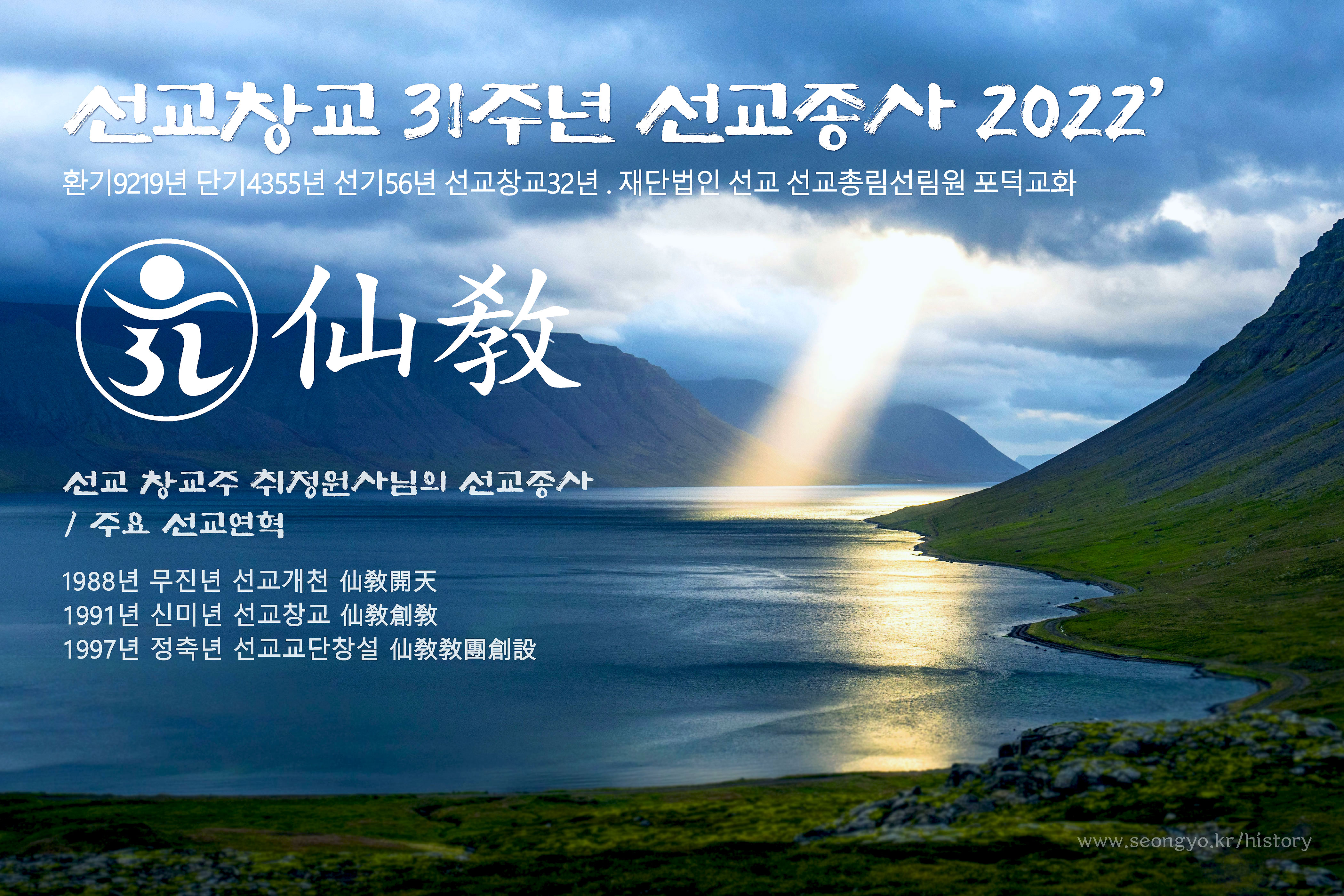 서기2022년은 환기9219년 단기4355년 선기56년 선교창교32년(31주년)입니다.