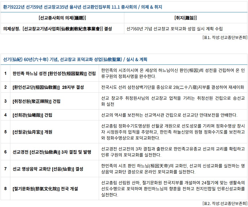 “선교창교기념사업회 결성 · 선기60년 선교 교화 성업(聖業)실시” 수립