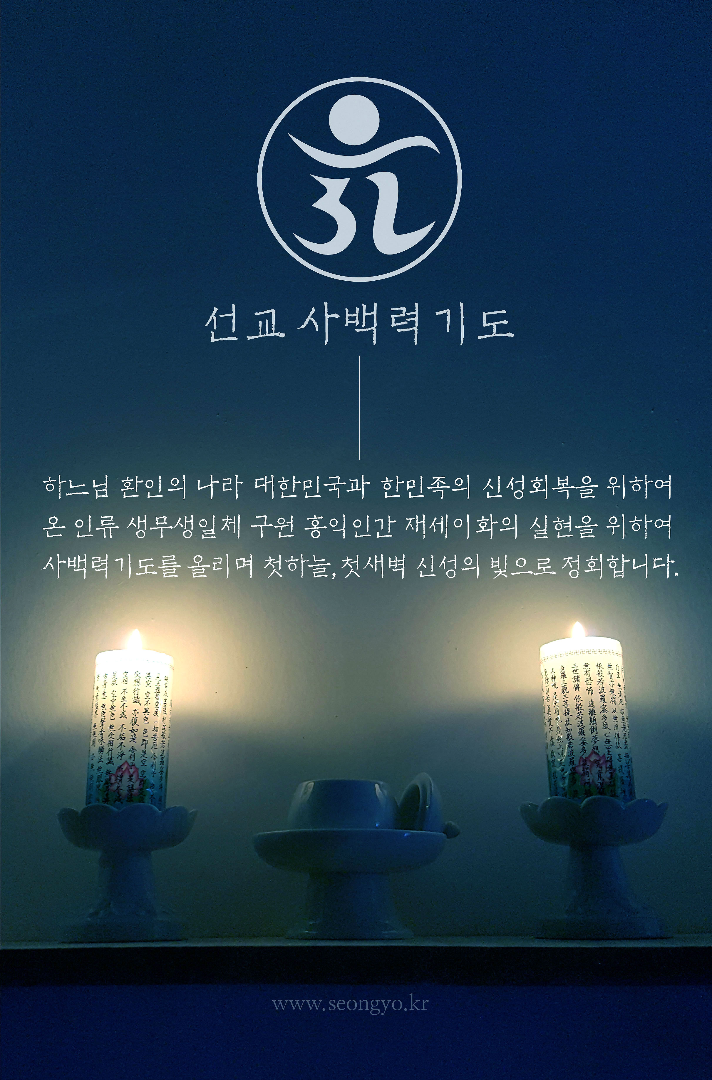 ※ 사백력 기도회(斯白力祈禱會), 선교 창교주 취정원사께서 창시하신 새벽신성기도 https://www.seongyo.kr/first-light