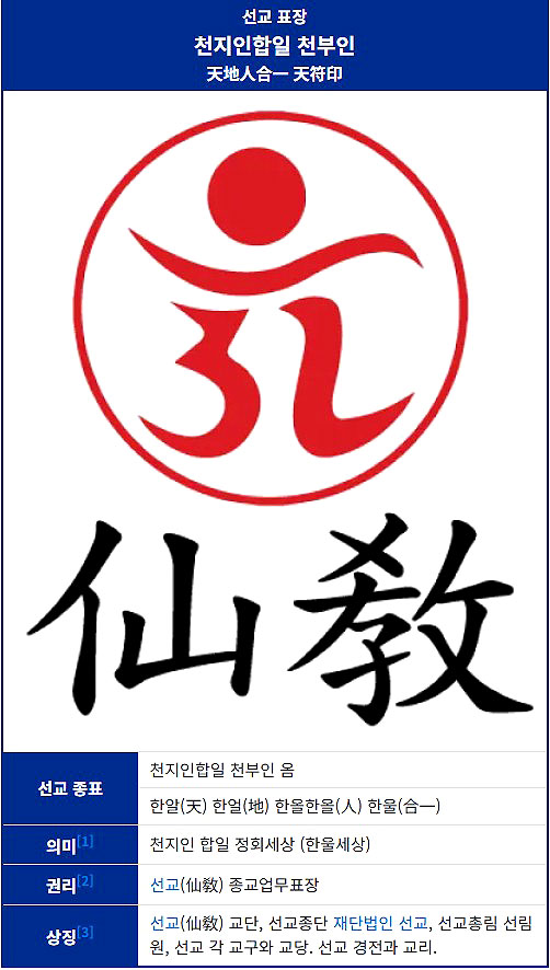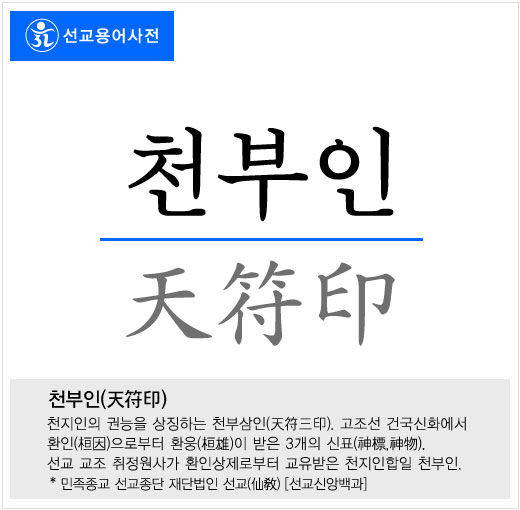 ※ 선교 교단(仙敎敎團)의 천부인(天符印)은 하느님 환인(桓因)의 교화와 우주 근원의 진리를 상징한다.