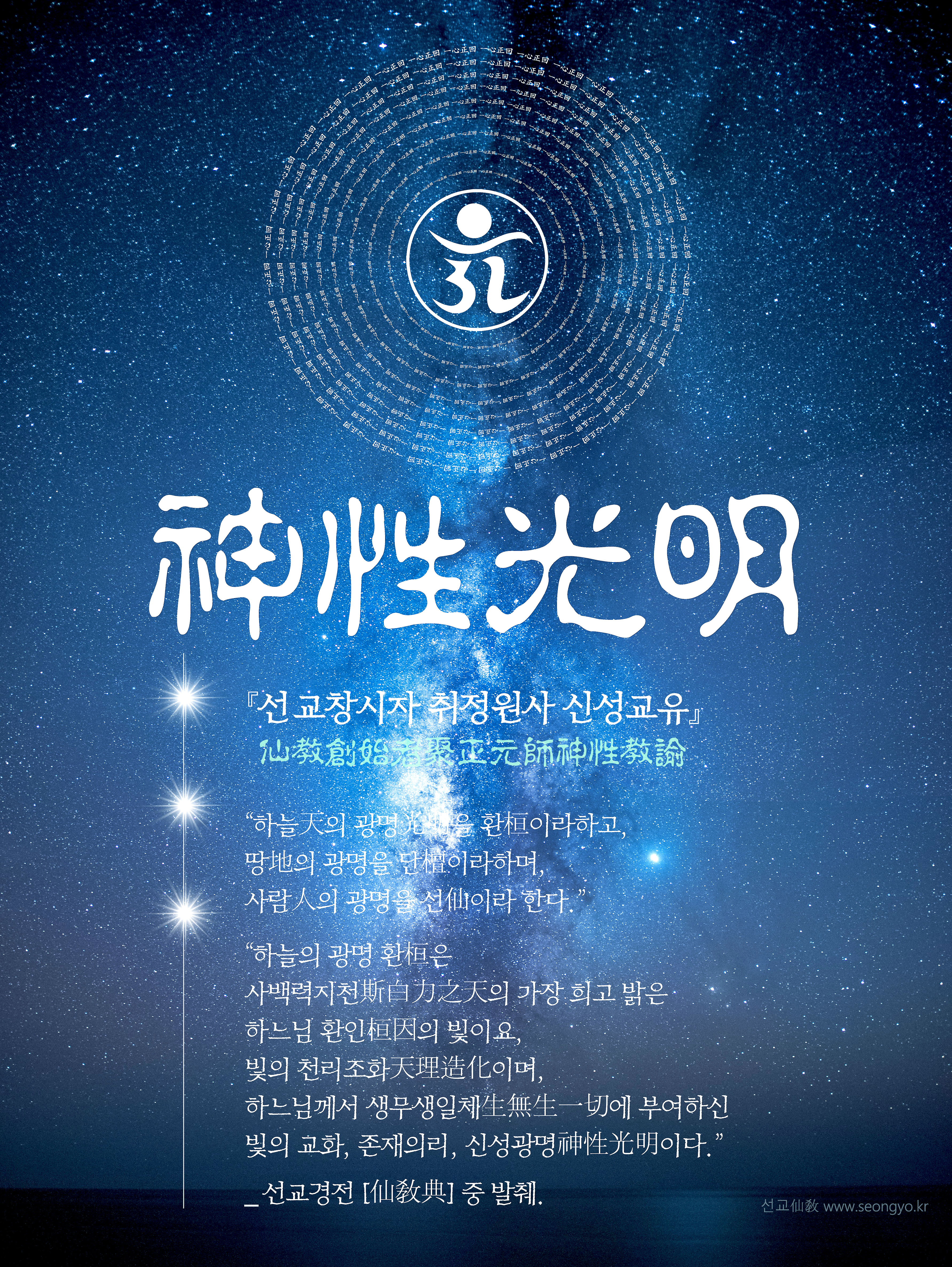 한민족 고유종교 선교 / 창교주 취정원사 / 「桓檀仙」선학(仙學) 강연 선교 교조 취정원사 선학(仙學) 강연“하늘의 광명 환(桓) · 땅의 광명 단(檀) · 사람의 광명 선(仙)” 선교경전 『선교전(